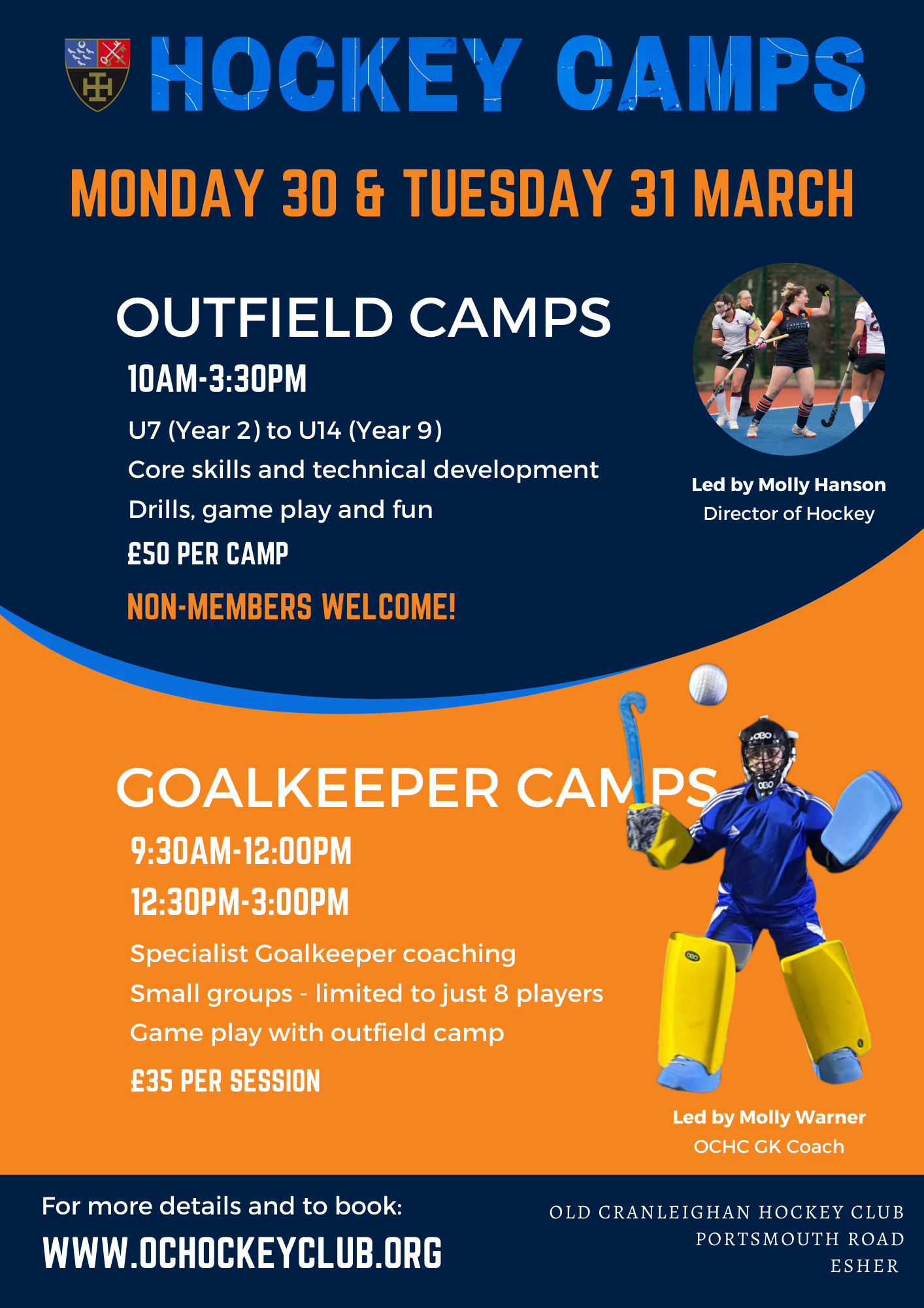 Join us on Monday 30 and Tuesday 31 March for some Easter hockey outfield and goalkeeper fun on the pitch! Find out more by visiting our camps page HERE.