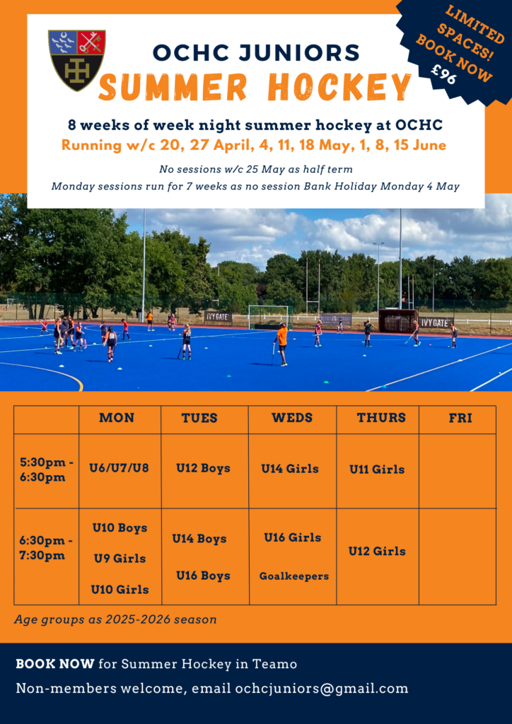 Our Junior Summer Hockey programme is now live and open for booking! As the season comes to an end, that doesn’t mean an end to Junior Hockey. This 8 week programme, with sessions for all age groups, starts w/c 20 April. Enjoy an hour of fun, informal hockey in the warmer weather, with lots of game play. Age groups are based on 2025-26 age groups.