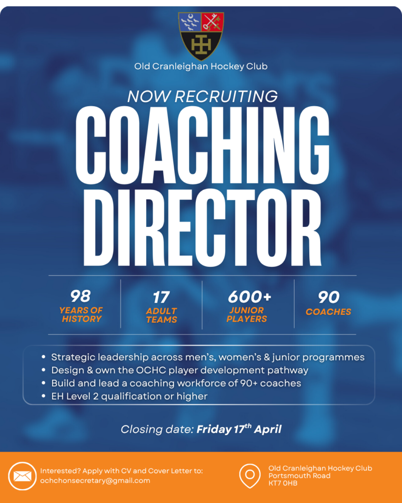 Old Cranleighan HC is seeking an experienced and ambitious Coaching Director to provide strategic leadership across all hockey programmes at our club.